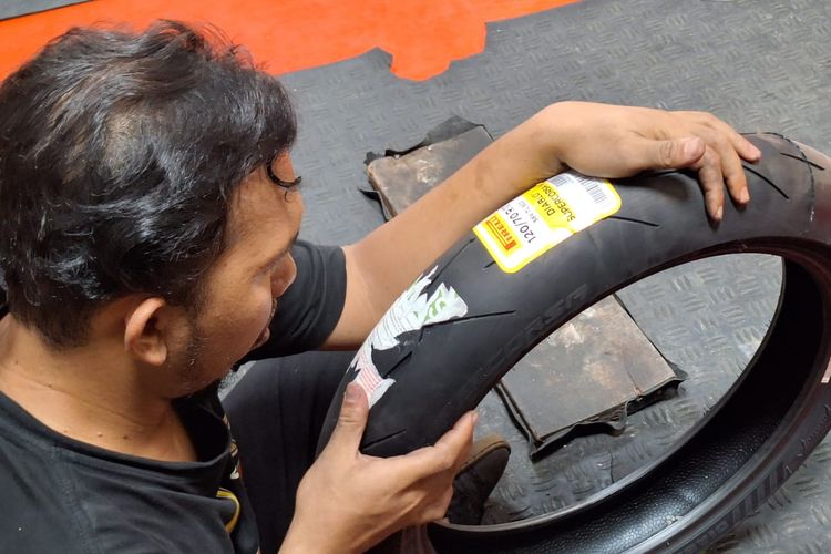 Sticker pada ban motor baru menurut mekanik harus dilepas sebelum digunakan, soalnya bisa menimbulkan bahaya.