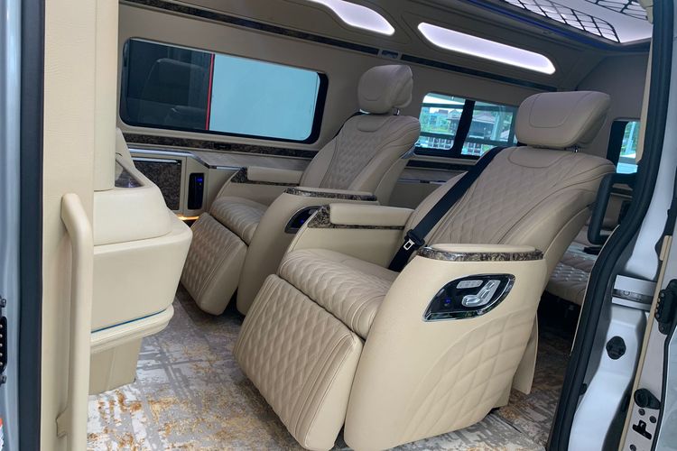 Modifikasi interior dari Toyota HiAce Premio tipe Prestige garapan Baze Luxury Bus kini berubah format, seperti ini detailnya.