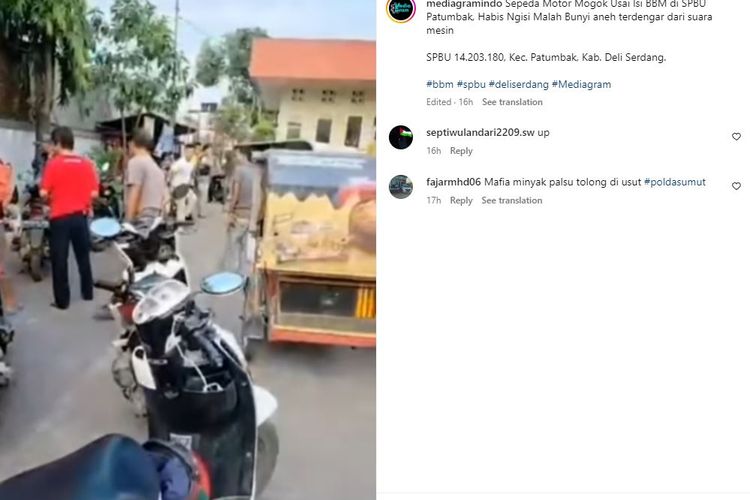 Sejumlah kendaraan mengalami mogok berjamaah usai mengisi BBM di SPBU Patumbak Deli Serdang, bau solar tercium dari motor korbannya