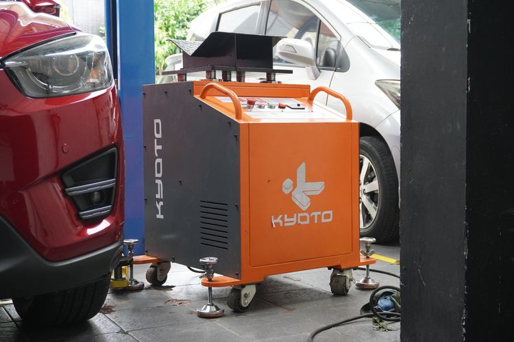 Bekerja dengan mengayunkan roda mobil, tidak semua masalah kaki-kaki mobil bisa terdeteksi dari Kyoto Shaking Machine.