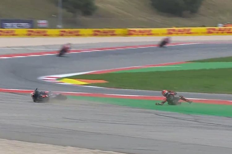 Maverick Vinales mengalami crash pada lap terakhir MotoGP Portugal 2024 dan langsung kehilangan podium di depan mata, kok Aprilia minta maaf?