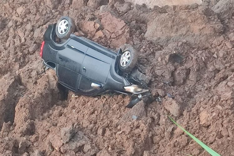 Sebuah mobil minibus jenis Isuzu Panther yang sedang melintas dilaporkan ikut masuk ke dalam jurang saat jalan tersebut tiba-tiba ambles..