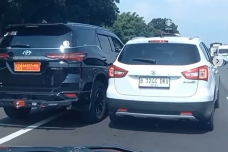 Seorang pengendara mobil Fortuner dengan pelat Mabes TNI marah-marah setelah diduga menabrak mobil di Tol Jakarta-Cikampek KM 57..