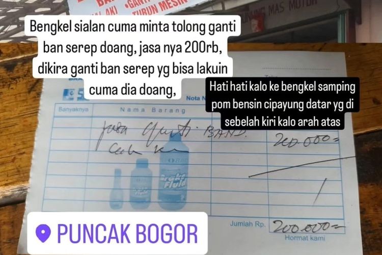 Viral di media sosial seorang pemilik mobil yang curhat karena merasa kena harga yang mahal saat mengganti ban di salah satu bengkel kawasan Puncak