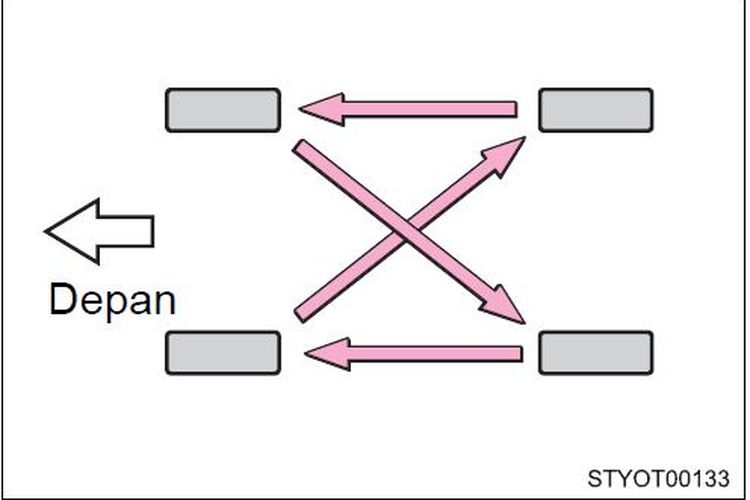 Langkah rotasi ban bisa dilakukan jika kondisi ban belakang masih tebal daripada ban depan. Sehingga ban akan aus dengan merata.