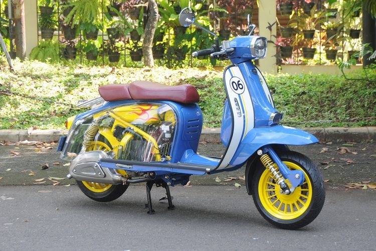 Adega Anggayasta, owner Rainbow Moto Builder (RMB) melakukan modifikasi pada Royal Alloy GP150 miliknya dengan konsep Hot Wheels