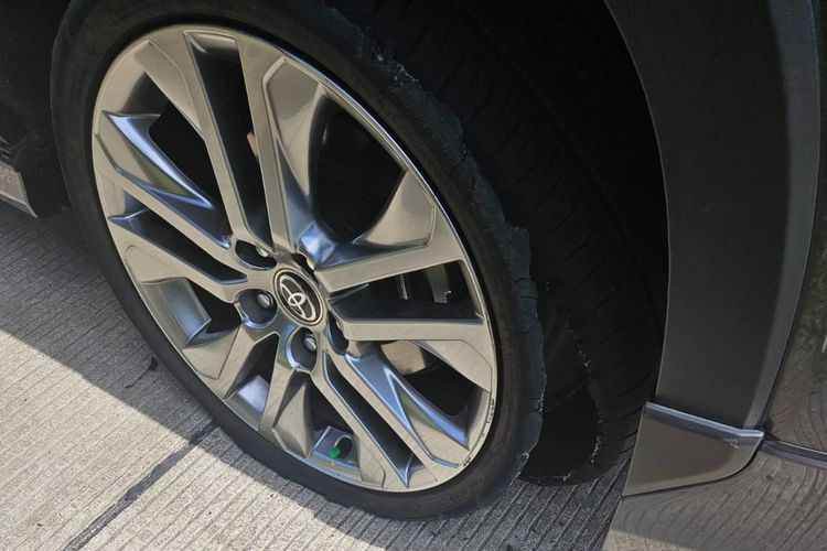 Evi Liana enggak sendiri, ban Dunlop terbelah juga dialami Eko Wahyudi diunggah di akun Facebook Toyota Kijang Innova Zenix / Hybrid Fans & Owners