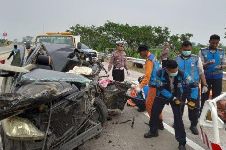 Toyota Kijang Innova berisi keluarga asal Blora Jawa Tengah hancur terkoyak di tol Batang-Semarang, tiga orang tewas