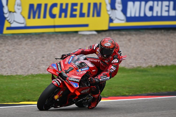 Pecco Bagnaia menang MotoGP Jerman 2024, Jorge Martin crash, duo Marquez bersaudara meraih podium di Sachsenring.