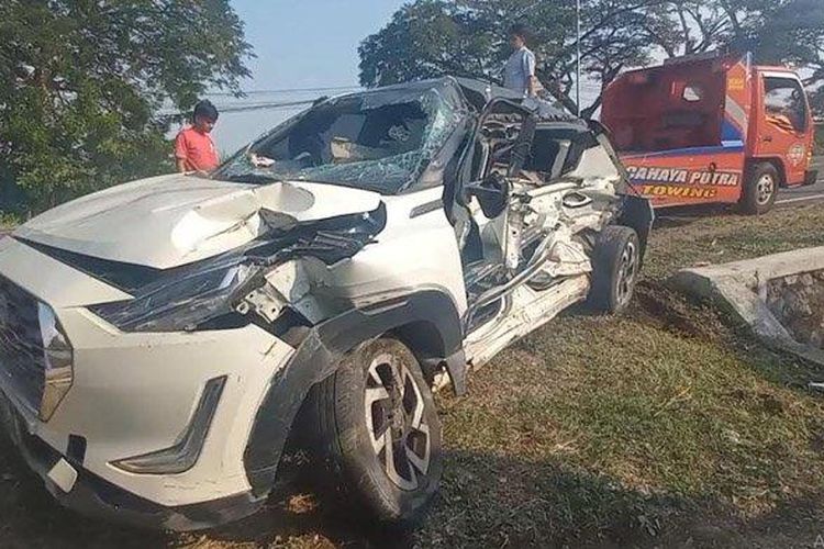 Nissan Magnite babak belur di parit, dua penumpang kejepit usai duel lawan yang lebih besar di Madiun