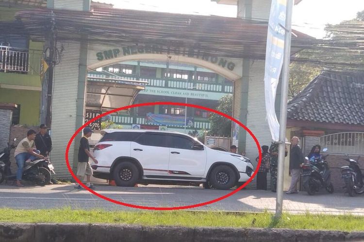 Orang tua calon murid blokir gerbang masuk sekolah SMPN 1 Cibinong Bogor memakai Toyota Fortuner, diparkir melintang