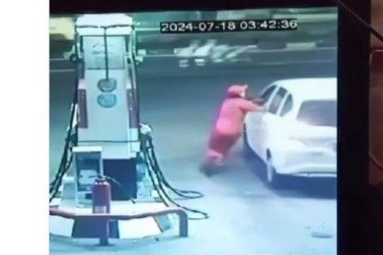 Mobil putih ini diburu polisi, nekat isi bensin Rp 300 ribu di SPBU tapi ogah bayar. Petugas SPBU sampai dibuat gelantungan puluhan meter