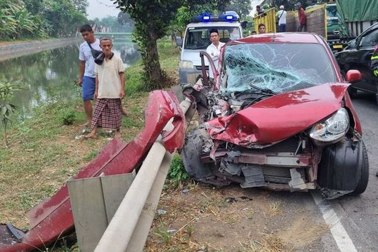 Nissan March babak belur sampai bikin kaca hingga bumper ringsek. Berawal nyalip hingga tabrakan lawan si badan besar