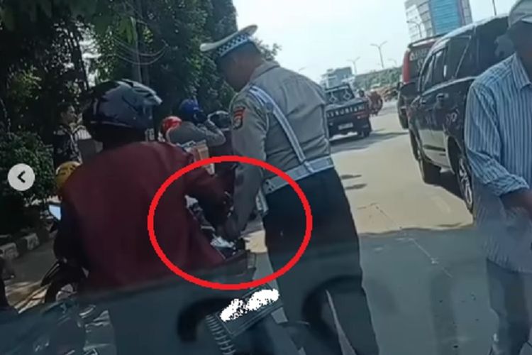Viral video polisi keciduk dapat salam tempel dari pemotor yang terkena tilang saat ada razia. Gerakan tangan terekam jelas