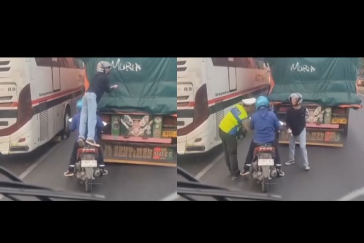Pati Lagi! Lakukan Vandalisme di Belakang Truk, Pemotor Langsung Digiring Polisi