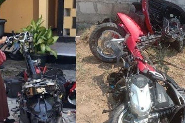 Honda Scoopy milik seorang guru SMA terkuliti bodinya usai dihantam Kereta Api saat sedang menyebrang rel tanpa palang pintu