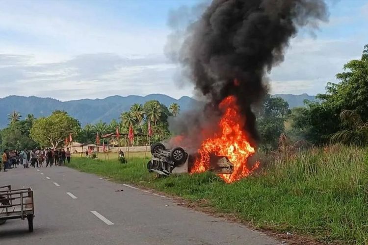 Daihatsu Xenia Dibakar Massa Posisi Tatap Langit, Sopir dan Penumpang Ikut Digebuki