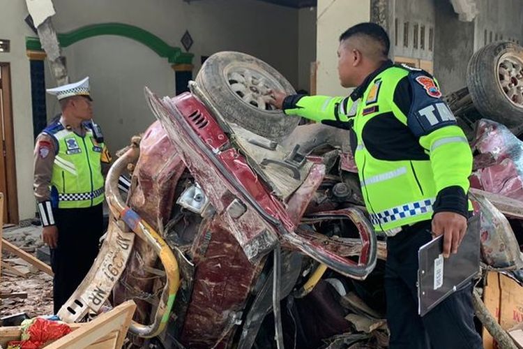 Suzuki Carry yang dikemudikan seorang lansia ringsek usai jatuh dari atas dan timpa rumah warga. 1 nyawa melayang