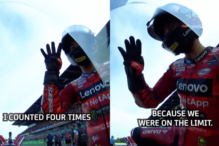 Ini arti isyarat empat jari yang diacungkan Pecco Bagnaia kepada Jorge Martin usai balapana sprint MotoGP Thailand 2024.