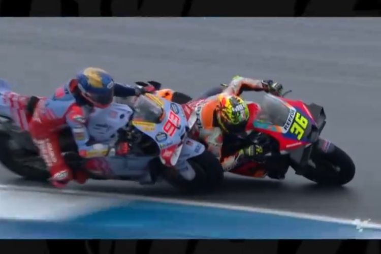 Joan Mir akhirnya merasakan yang Valentino Rossi rasakan, saat ditabrak Marc Marquez di balapan MotoGP Thailand 2024.