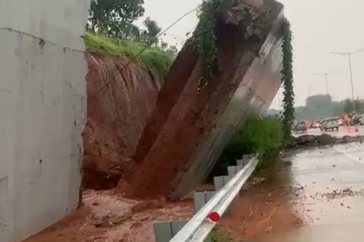 Imbas tingginya curah hujan, sempat terjadi longsor pada Dinding Penahan Tanah (DPT) Jalan Tol Serpong – Cinere sepanjang 25 meter.