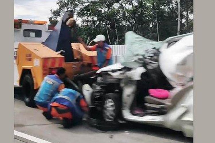 Bodi depan Suzuki Karimun Wagon R ringsek parah di tol Semarang-Solo. Petaka berawal sopir ambil lajur tak semestinya