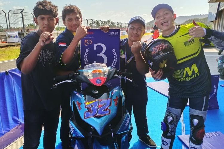 SMK Insan Mulia Tangerang juga jadi satu-satunya perwakilan dari SMK binaan Yamaha yang turun di kelas Aerox Community dan berhasil naik podium.