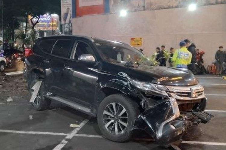 Mitsubishi Pajero Sport babak belur setelah hajar gerobak pedagang di pinggir jalan Bandung. Diduga sopir mengalami hal ini