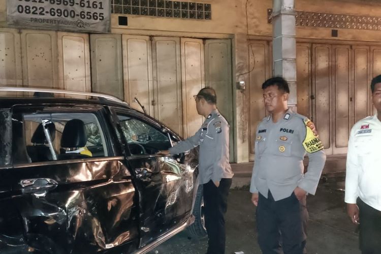Mitsubishi Xpander dan pengemudinya menjadi sasaran amuk massa hingga rusak parah di dekat pintu tol Tanjung Mulia Hilir, Medan Deli, kota Medan