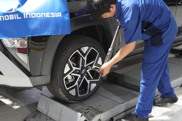 Tanpa harus pakai kunci torsi, dengan kunci roda tool kit bawaan bisa pasang mur roda yang benar dengan cara ini.