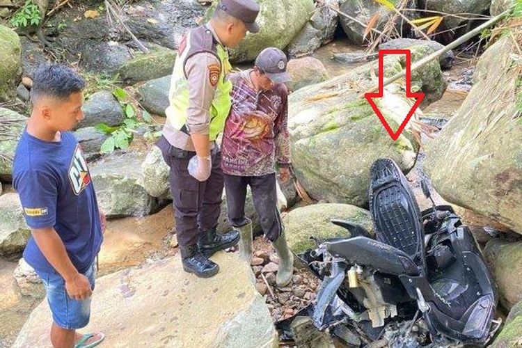 Yamaha NMAX terjun ke jurang dengan dasar kali berbatu di jalan Raya Munjungan-Kampak, Kabupaten Trenggalek, mesin, CVT dan sokbreker terpotong-potong