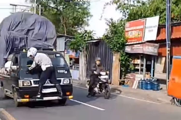 Petugas Dishub Pertaruhkan Nyawa, Bergelantungan di Moncong Mitsubishi L300 Berjalan
