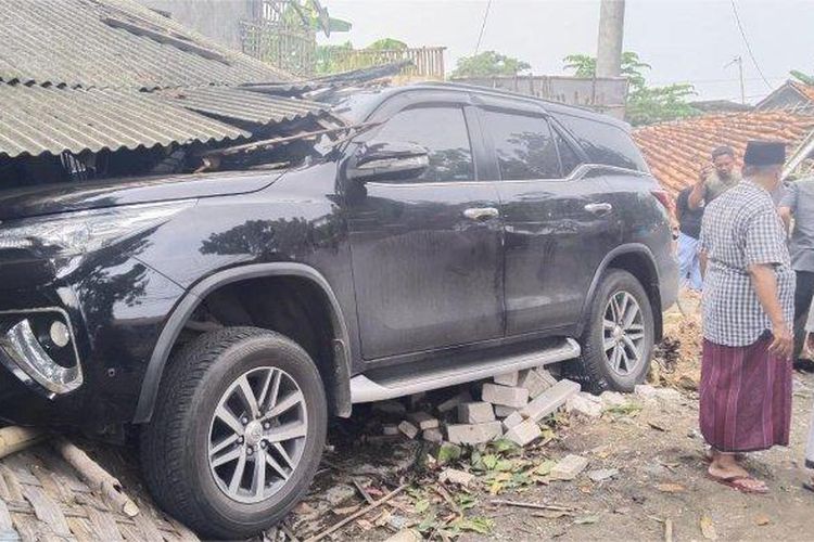 Toyota Fortuner bablas hingga berakhir satroni warung di pinggir jalan. Diduga berawal mata si sopir merem melek