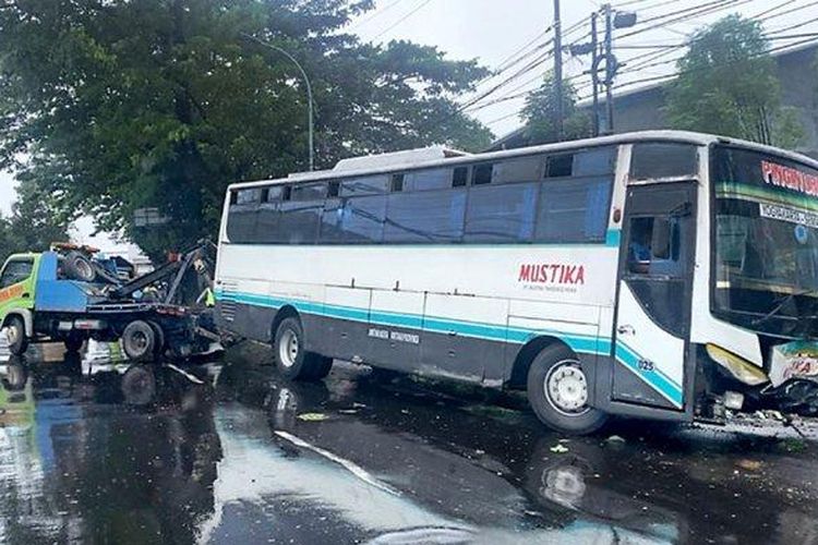 Kronologi laka tunggal bus PO Mustika di Pudakpayung, Banyumanik, kota Semarang yang membuatnya hanya bisa narik setengah hari
