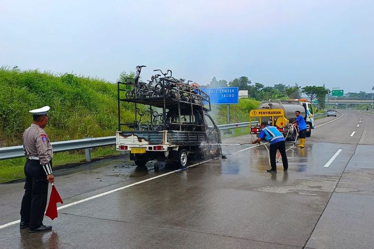 Kronologi mobil pikap dan 16 sepeda listrik yang diangkut terbakar habis hingga jadi bangkai di tol Gempol-Pasuruan