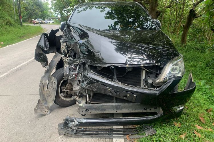 Toyota Kijang Innova hancur parah setelah terlibat kecelakaan dengan Suzuki Carry di Wonoharjo, Nguntoronadi, Wonogiri sebabkan tiga orang luka