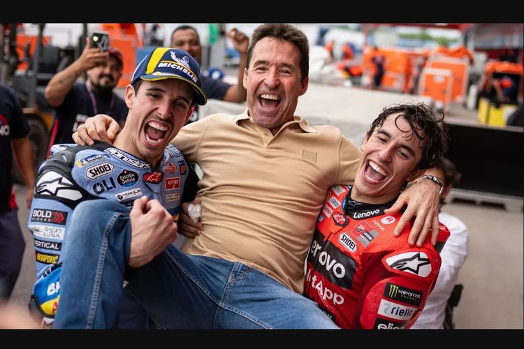 Begini sikap kocak kebingungan ayah Marc Marquez dan Alex Marquez saat kedua anaknya meraih podium bersama.