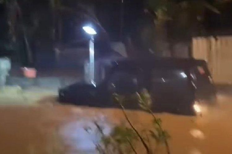 Sebuah mobil sampai terseret arus saking serasnya banjir di bantul, Yogyakarta pada Jumat (28/3/2025).