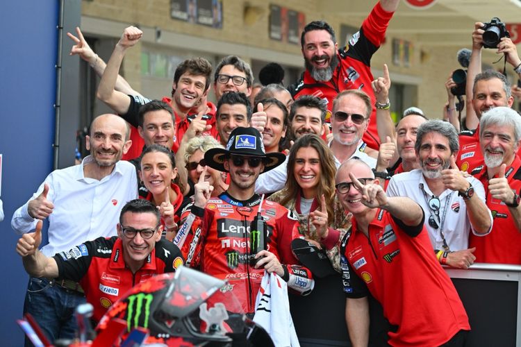 Pecco Bagnaia menang MotoGP Amerika 2025, Marc Marquez crash saat memimpin lomba, sempat terjadi banyak drama.