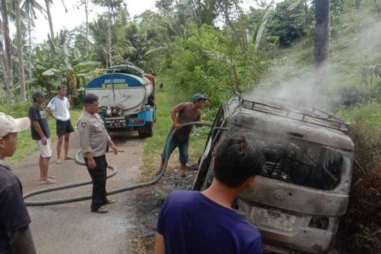Kaki dan tangan pengemudi Daihatsu Luxio terbakar akibat dielus zat panas yang menyembur dari bawah jok di Sumbermanjing Wetan, kabupaten Malang
