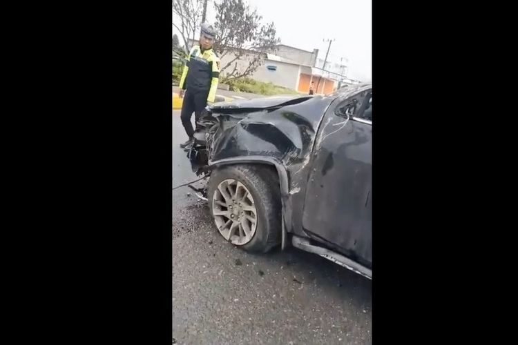 Bupati Luwu Utara, Andi Abdullah Rahim kecelakaan saat berangkat salat subuh, Toyota Fortuner dinas DP 1 H hancur depan