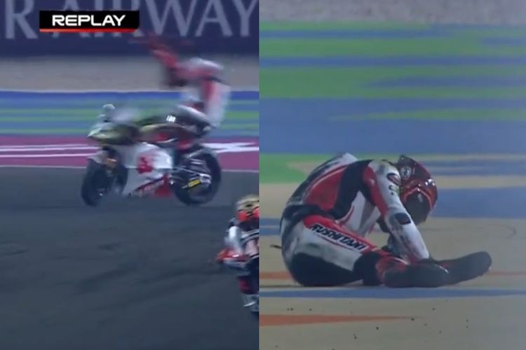 Pembalap Indonesia Mario Aji mengalami highside crash pada sesi kualifikasi Moto2 Qatar 2025, begini kondisinya sekarang.