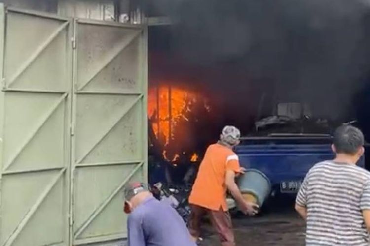 Gudang onderdil mobil bekas di Larangan, kota Tangerang terbakar hebat, pemilik rugi setengah miliar karena ini