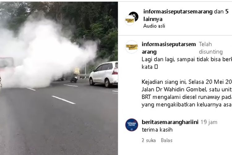 Bus Trans Semarang keluarkan asap tebal yang sebut diesel runaway ketika meleawti tanjakan Gombel. Ini penyebabnya