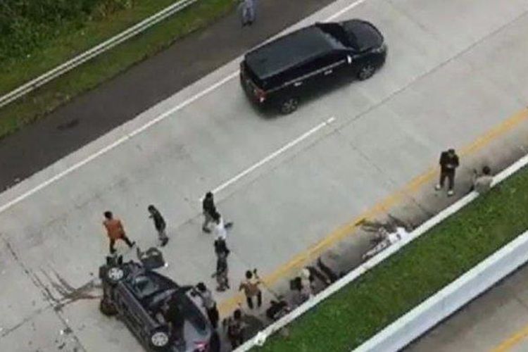 Toyota Avanza isi rombongan perawat RSUD Cirebon rebahan di ruas Tol Cisumdawu. Begini kondisi para penumpangnya