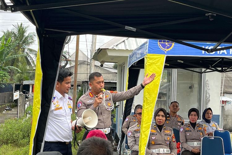 Belasan juru parkir di kota Pangkalpinang, Bangka Belitung dilatih Polisi cara meniup peluit untuk membedakan suara jalan, lambat dan berhenti