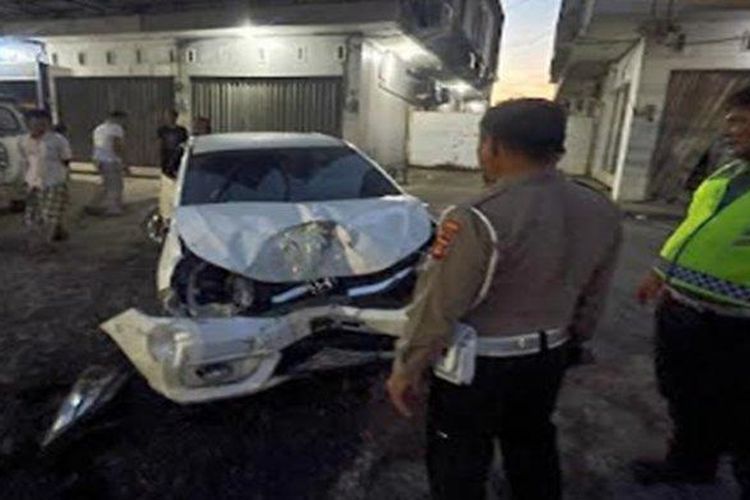 Honda Brio babak belur usai hantam ruko yang digunakan sebagai salon di Palembang. Sopir meregang nyawa