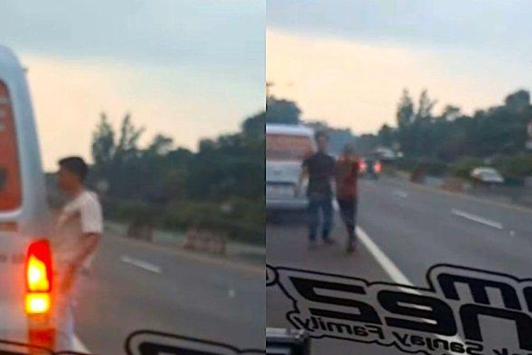 Sopir Daihatsu Gran Max berstiker Lalamove nopol B 2850 UFZ todongkan pistol ke pengemudi lain di KM 95 tol Cipularang