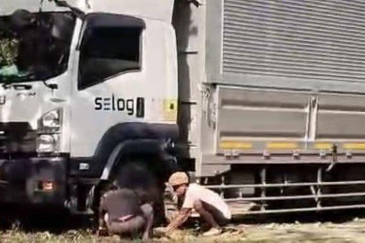 Truk boks disesatkan mbah-mbah penunjuk jalan hingga terperosok di kawasan hutan jati, Blora, Jawa Tengah