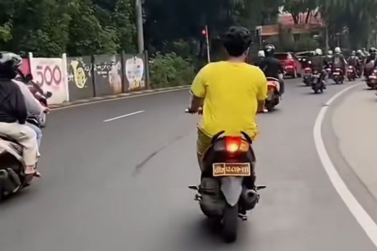Merasa Kebal, Pemotor Yamaha Soul GT Pakai Pelat Dinas Polisi Tanpa Helm